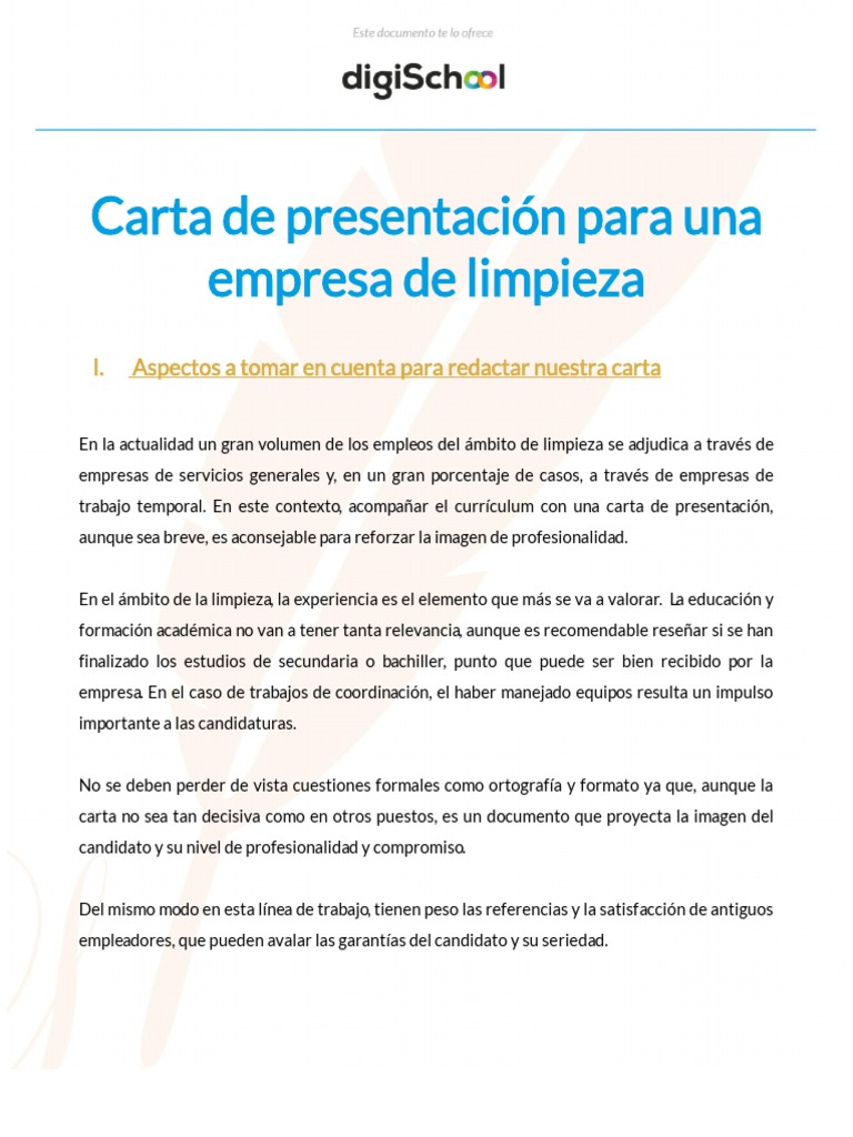 Carta De Presentacion Para Una Empresa De Limpieza I Aspectos A Tomar En Cuenta Para Redactar Nuestra Carta Empresas Plan De Estudios